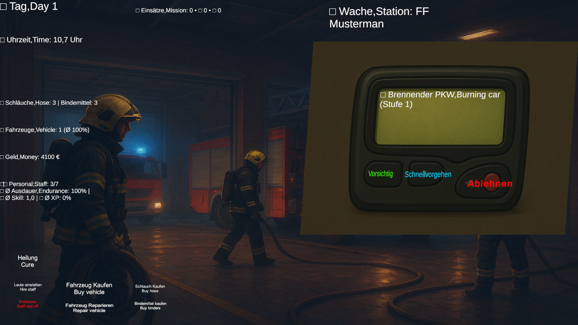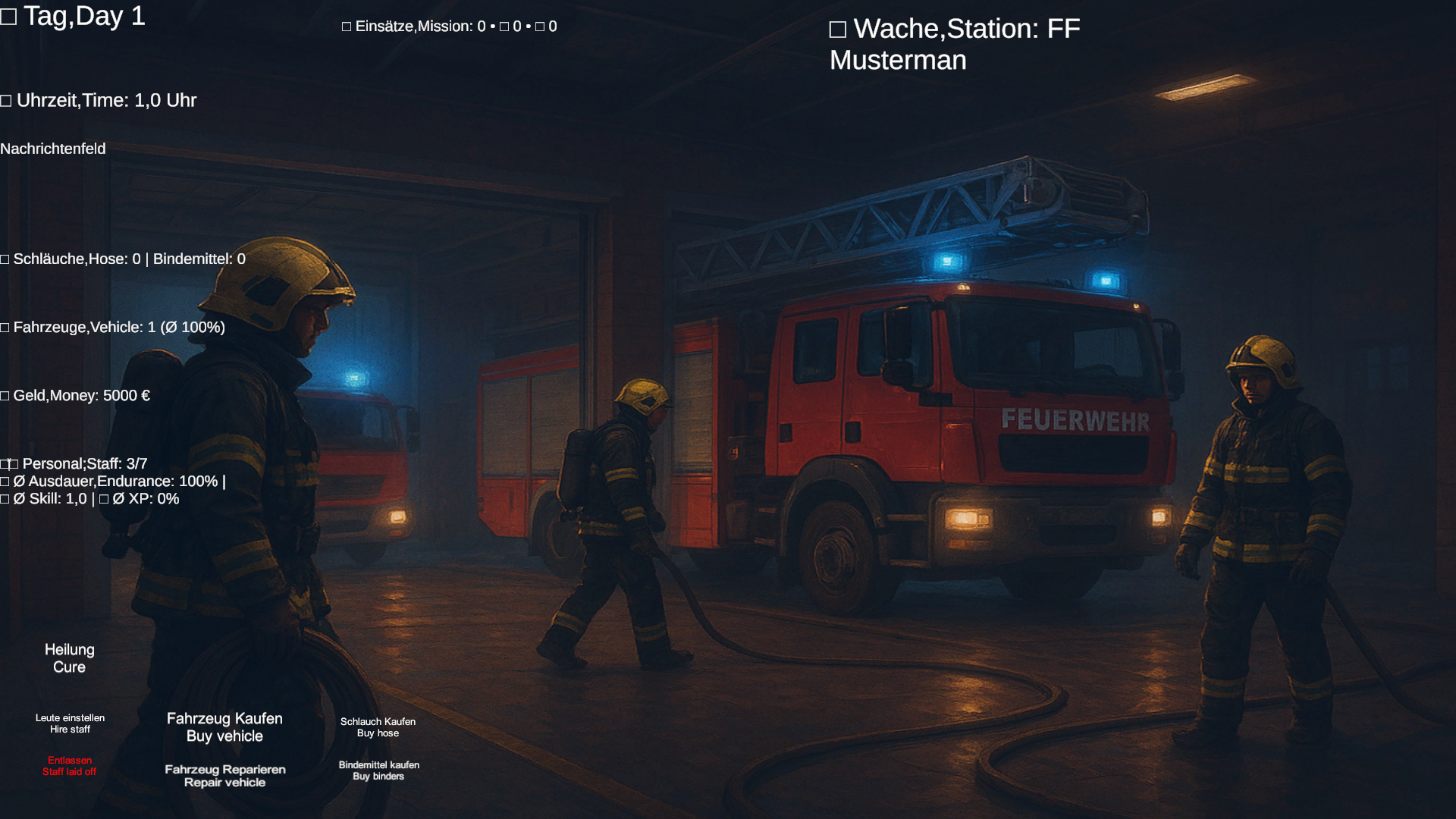 In Feuerwehr Manager, einem realistischen, textbasierten Strategiespiel, leitest du deine eigene Feuerwehrwache – von der Einsatzplanung bis zur Mannschaftsführung. Kein hektisches Klicken, keine Actionkamera – nur du, deine Entscheidungen und die Konsequenzen.